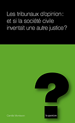Depuis plusieurs décennies, face aux défaillances et aux limites des juridictions pénales nationales et internationales, des tribunaux d’un genre particulier et méconnu, les « tribunaux d’opinion », sont établis par des membres de la société civile de par le monde. Ces mécanismes singuliers visent à analyser juridiquement et dénoncer des violations des droits humains restées impunies, ainsi qu’à donner la voix à celles et ceux qui les ont subies. S’ils sont, pour certains, de simples parodies de procès propagandistes, ils représentent pour d’autres un espace de résistance et, par-dessus tout, un dernier espoir d’obtenir justice. Une justice alternative, mise en œuvre pour les victimes et non contre des accusés, réparatrice plutôt que répressive…symbolique, certes, mais loin d’être sans effet.