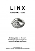 Entre syntaxe et discours. Eclairages épistémologiques et descriptions linguistiques