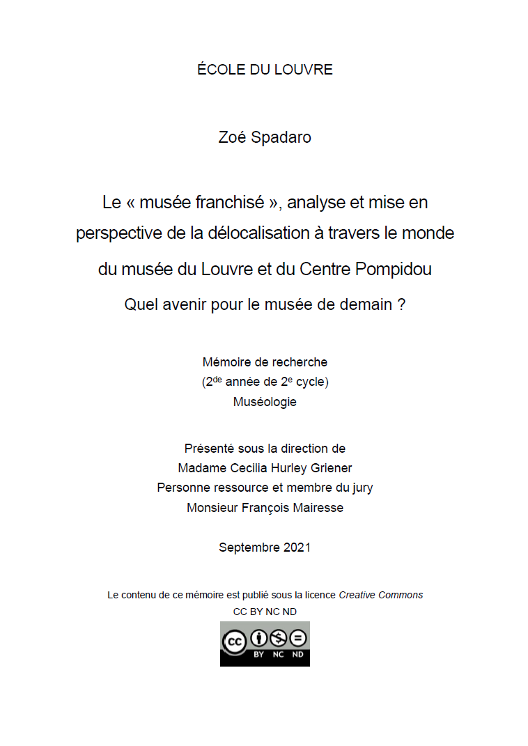 Ce mémoire de muséologie est produit par l'Ecole du Louvre.