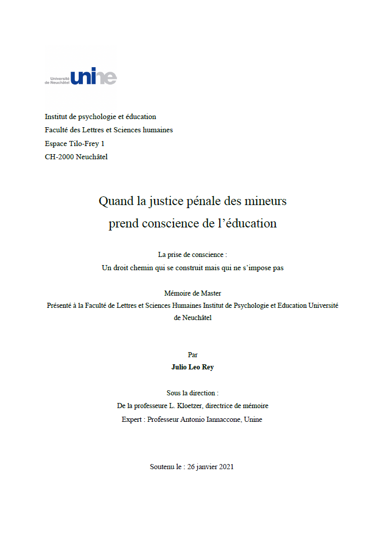 Rey Julio Leo - Quand la justice pénale des mineurs prend conscience de l'éducation UNINE MEMOIRE 2021.pdf